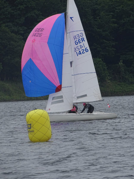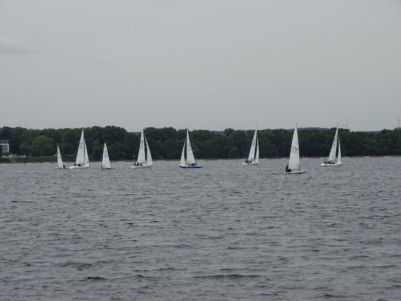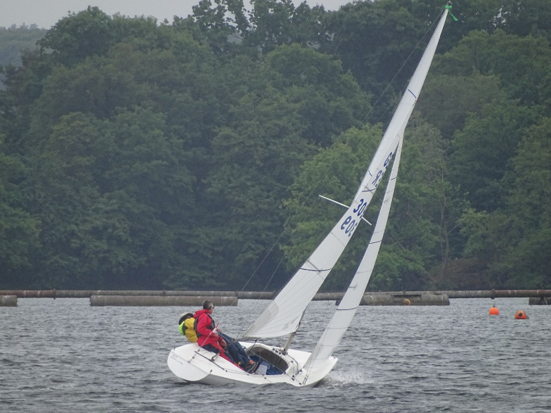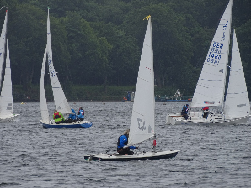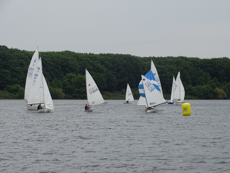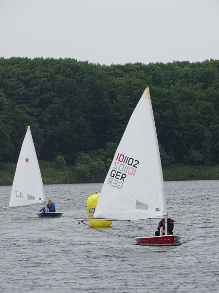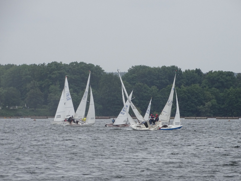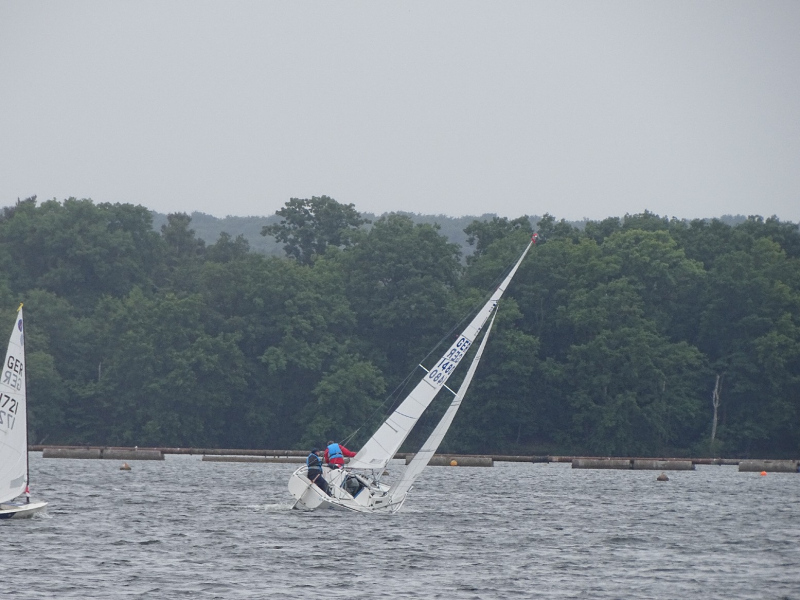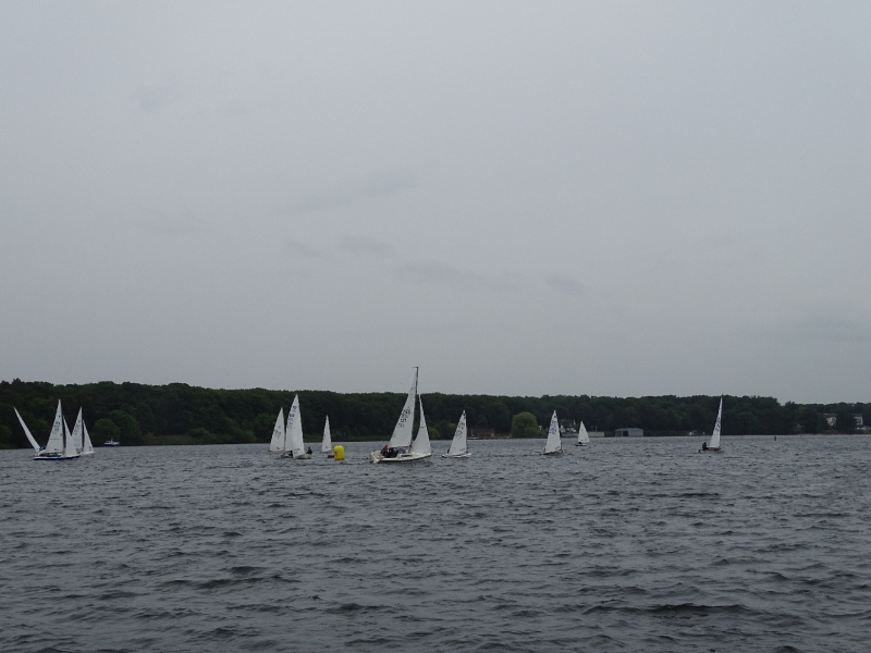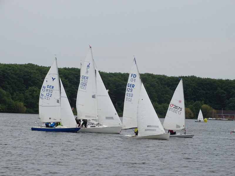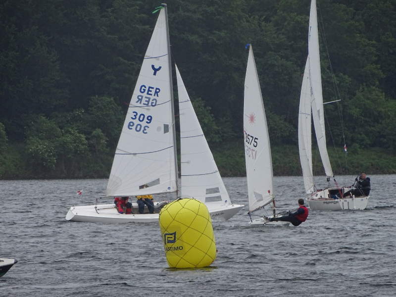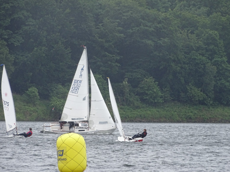 Bei drei bis vier Beaufort Windstärken sammelten sich die Boote auf dem Stausee und die erste Wettfahrt konnte wie geplant stattfinden. Die kurze Distanz des Kurses lieferte spannende Kämpfe untereinander und ein dynamisches Feld. Die Positionierung an der Startlinie und die Einschätzung der Windverhältnisse bewiesen sich als entscheidend für eine gute Enplatzierung. Mit lediglich einem Fehlstart konnten insgesamt fünf Wettfahrten gesegelt werden. Trotz des kalten Windes, der Regenschauer und vereinzelter Kenterungen kämpften die Segler um gute Platzierungen, auch im Hinblick auf die Chance, wertvolle Punkte für den diesjährigen Seepokal zu sammeln.