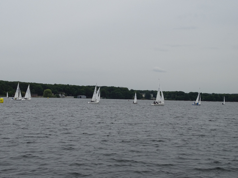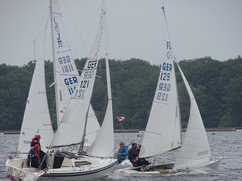 Mit gutem Wind im Rücken wurden die Wettfahrten und Runden bei der Steuerleutebesprechung instruiert. Geplant war es, die Kielboote getrennt von den Jollen starten und auf einem kurzen Dreieckskurs gegeneinander antreten zu lassen, dicht gefolgt von den Jollen. Gesagt getan.