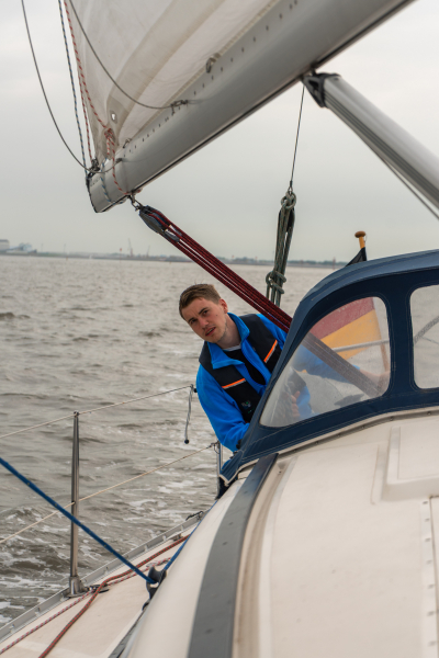 Am nächsten Tag stand der Wind ähnlich, hatte aber etwas auf fünf bis sechs abgeflaut, sodass wir versuchten, hoch am Wind entlang durch das Ijsselmeer zu kreuzen, um Strecke in Richtung Norden zu machen. Doch der Abdrift, die gegenströmenden Wellen und die schweren Windbedingungen zwangen uns ab einem gewissen Punkt, die Segel erneut zu bergen und wieder unter Motor zu fahren. Unter den Bedingungen wäre es nicht möglich gewesen, vor Sonnenuntergang unseren Hafen in Den Oever zu erreichen. Dies trübte ein wenig die Stimmung – vor allem, weil wir zu Beginn unserer Reise bereits so viele Meilen unter Motor sammelten. Aber gegen das Wetter ließ sich nichts machen.