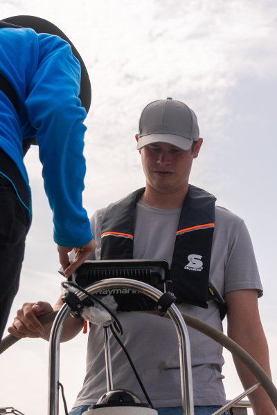 Am nächsten Tag stand der Wind ähnlich, hatte aber etwas auf fünf bis sechs abgeflaut, sodass wir versuchten, hoch am Wind entlang durch das Ijsselmeer zu kreuzen, um Strecke in Richtung Norden zu machen. Doch der Abdrift, die gegenströmenden Wellen und die schweren Windbedingungen zwangen uns ab einem gewissen Punkt, die Segel erneut zu bergen und wieder unter Motor zu fahren. Unter den Bedingungen wäre es nicht möglich gewesen, vor Sonnenuntergang unseren Hafen in Den Oever zu erreichen. Dies trübte ein wenig die Stimmung – vor allem, weil wir zu Beginn unserer Reise bereits so viele Meilen unter Motor sammelten. Aber gegen das Wetter ließ sich nichts machen.