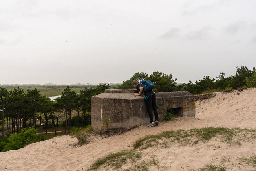 Durch neugierige Sperlinge geweckt, ging es mit rasanter Geschwindigkeit hinüber zu unserer zweiten Insel. Schon von weitem erkannten wir den markanten Leuchtturm, der architektonisch zwar keine Schönheit ist, jedoch gut sichtbar und mit hoher Tragweite den Weg zum Hafen wies. Wir kamen kurz vor Niedrigwasser an, machten in einer Box fest und begaben uns sofort zu den Dünen und dem Wattenbereich. So erkundeten wir die Hinterlassenschaften des Zweiten Weltkriegs in den Dünen – übriggebliebene Betonbunker, die sich tief in den Sand gruben – und gingen schließlich weiter auf das platte Watt hinaus.
