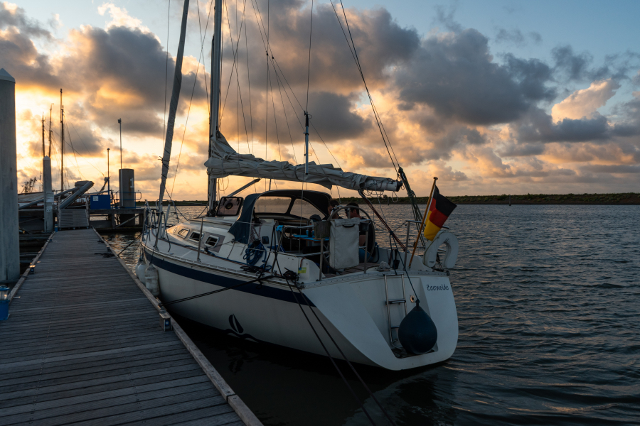 Entsprechend groß war die Erleichterung, als wir es endlich geschafft hatten, im Päckchen festzumachen, den atemberaubenden Sonnenuntergang zu bewundern und voller Erschöpfung in unsere Bug- und Heckkojen fallen zu können. Es war ein erster, eher abschreckender Anreisetag – vor allem für unseren Nichtsegler Tim. Es sollte jedoch mit Abstand der schwierigste Teil gewesen sein.