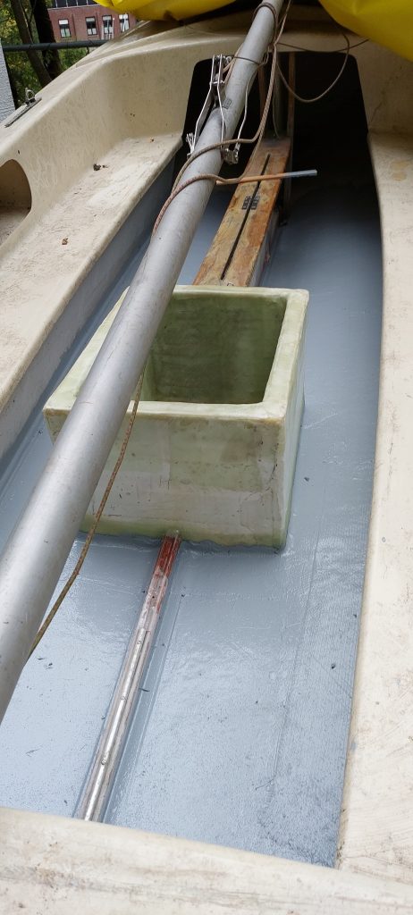 Als nächstes das Unterwasserschiff mit Hart-Epoxy gestrichen, weil auf Antifouling verzichten wir!